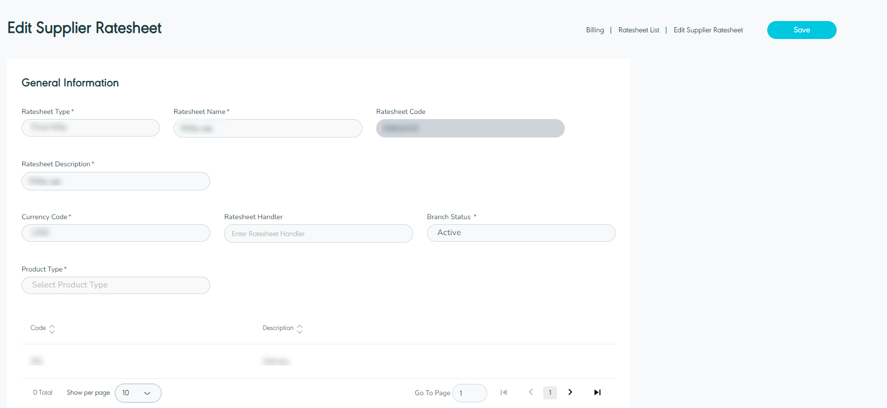 The user can edit the details of an existing supplier ratesheet by navigating to the ‘Supplier Ratesheet’ screen via clicking on Edit from Actions: